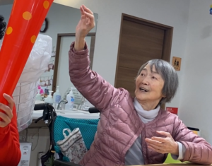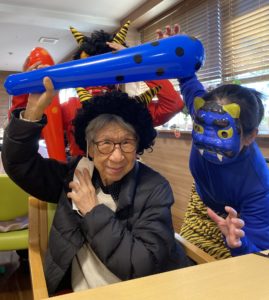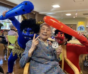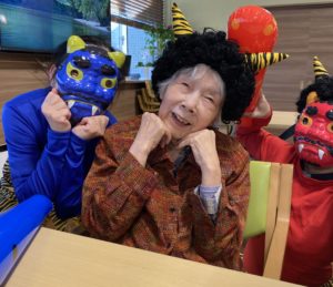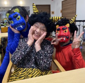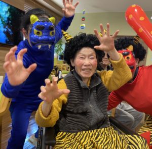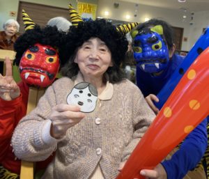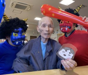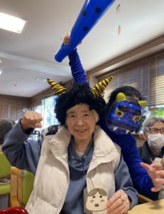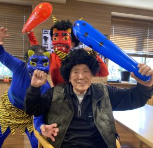 今年の節分は、皆さまの健康と長寿を願いボールを使って鬼退治をし、鬼と一緒に記念撮影を行いました。